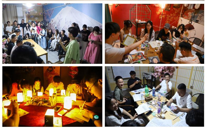 活動首站,青年們走進明光市融媒體中心參觀學習。隨后,隊伍轉場至中央廣場劇本殺活動館。大家隨機分為四個小組,沉浸體驗趣味盎然的劇本殺游戲。在數小時的劇情推理與團隊協作中,初識的拘謹被迅速打破,現場充滿歡聲笑語,大家在思維碰撞與默契配合中增進了了解,收獲了友誼。