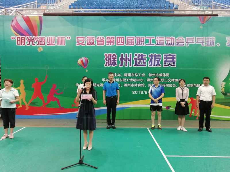 8月6日,安徽省第四屆職工運(yùn)動會乒乓球、羽毛球-滁州地區(qū)選拔賽在滁州市體育館隆重舉行。本次比賽由滁州市總工會、滁州市教體局主辦,安徽明光酒業(yè)有限公司協(xié)辦。來自各縣(市、區(qū))以及市直相關(guān)基層工會的選手近900人參加比賽。