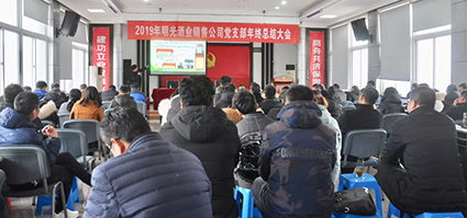 2020年元月10日,明光酒業銷售公司黨支部,在公司五樓會議室召開“年終總結大會”。公司紀委書記閆興淮、黨委委員銷售公司總經理劉邦、銷售公司副總經理劉楚及全體黨員和全體銷售人員百余人參加大會,大會由黨支部書記錢軍主持。