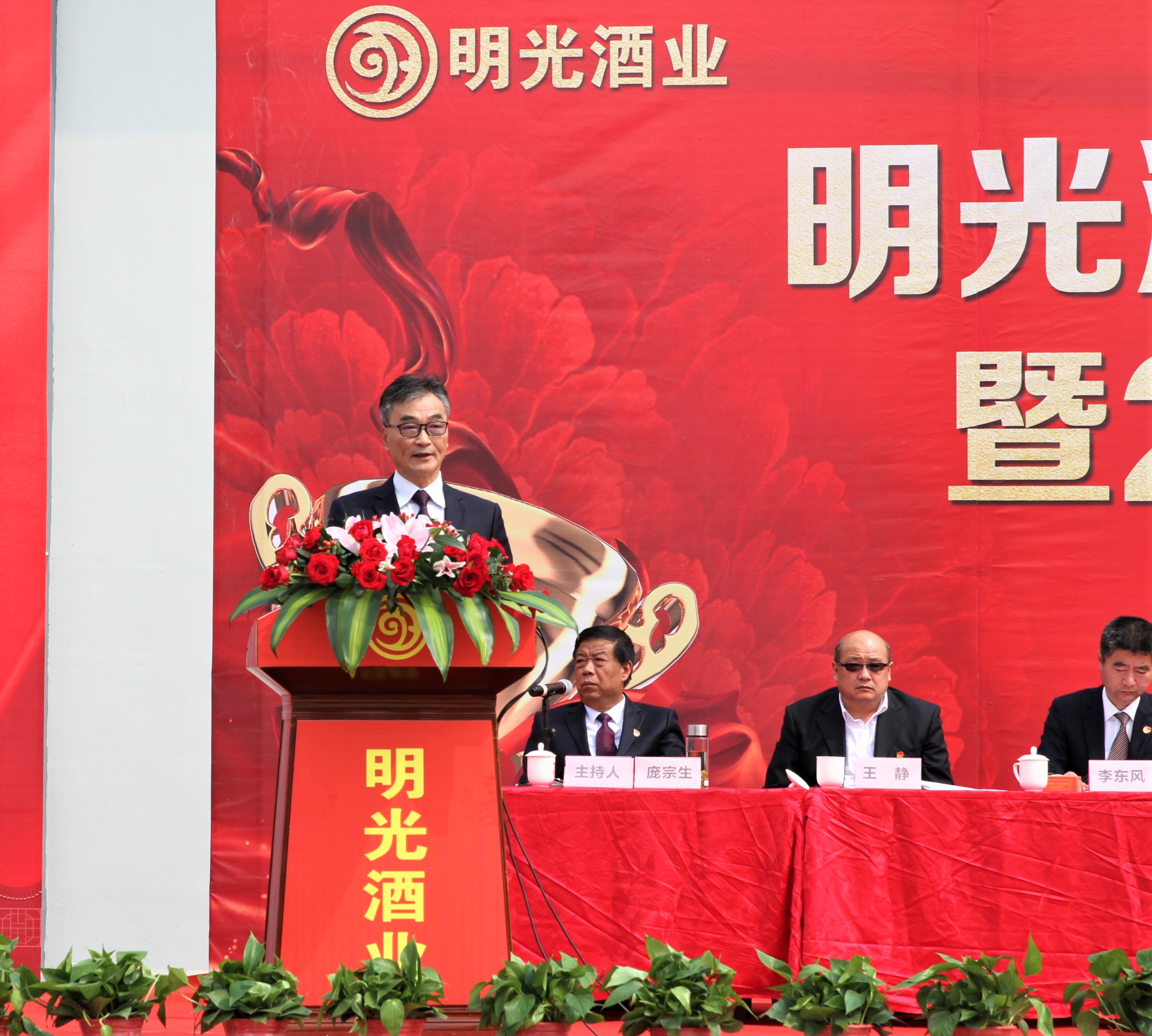 明光酒業總經理鞏建發表重要講話,他指出2019年是明光酒業建廠70周年,也是穩健前行、步伐扎實的一年。一年來,公司緊跟時代步伐,扣緊時間節點,堅持穩中求進的工作總基調,在搶抓機遇中乘勢而上,在攻堅克難中砥礪前行,在拼搏奮斗中凝心聚力,實現了“營銷指標逆勢而增、產品質量穩中向好、研發水平好中趨優、技改項目有序實施、廠區環境干凈整潔、員工面貌煥然一新”的良好局面。銷售收入實現同比增長13%,稅利比去年增加12%的良好業績。