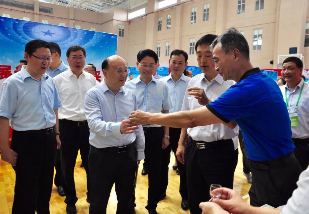 安徽省人大常委會副主任、省總工會主席李明、退役軍人事務(wù)廳廳長林海、滁州市市長許繼偉、市人大主任王圖強、市委副書記朱誠、建設(shè)銀行安徽分行黨委書記方華平等領(lǐng)導(dǎo)蒞臨比賽現(xiàn)場,參觀了明光酒業(yè)展位,總經(jīng)理鞏建在現(xiàn)場為各領(lǐng)導(dǎo)展示了企業(yè)特色產(chǎn)品,并邀請品嘗。