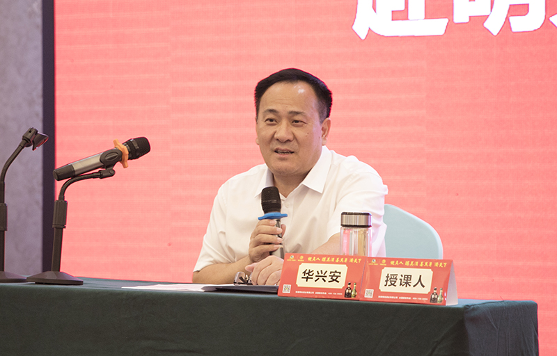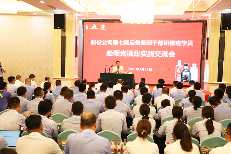 7月15日,古井貢酒股份有限公司第七期后備管理干部研修班60余名學員到明光酒業開展實踐交流活動,明光酒業董事長、總經理華興安應邀為研修班學員授課。