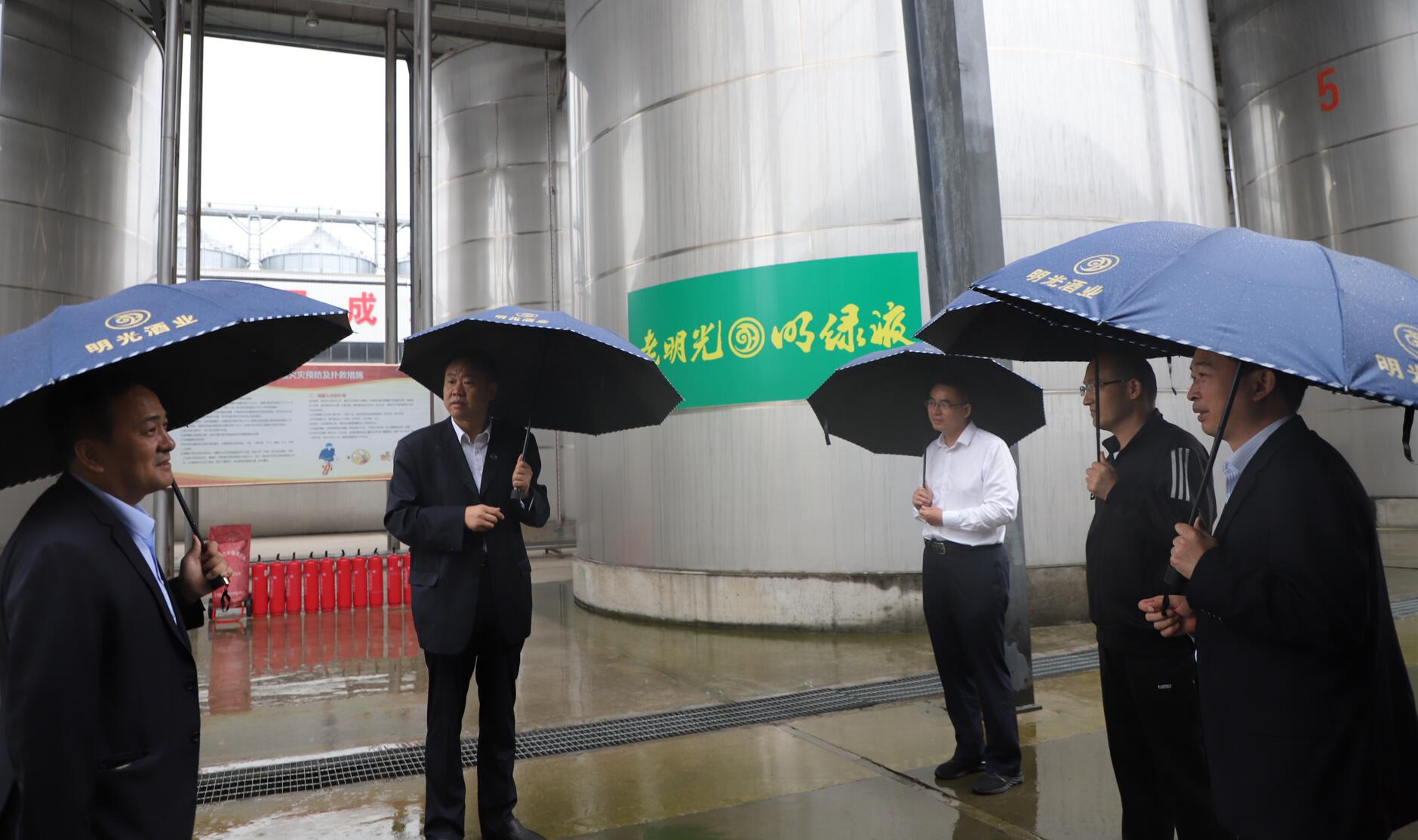 10月10日,古井集團黨委委員、股份公司副總經理、黃鶴樓酒業董事長許鵬一行到明光酒業調研指導采購工作,明光酒業董事長華興安熱情接待了許鵬一行。