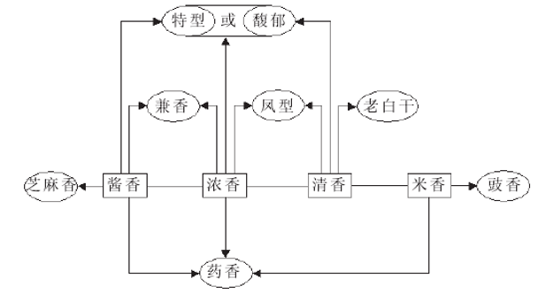 中國白酒的香型都是在醬香型、濃香型、清香型和米香型這四大香型的基礎上相互演化而生,如下圖: