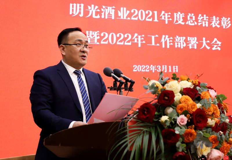 3月1日上午,明光酒業2021年度總結表彰暨2022年工作部署大會在御明樓舉行。明光酒業董事長華興安,總會計師李成彬,總經理助理丁峰,黨委副書記龐宗生等總辦會成員和黨委委員參加會議。