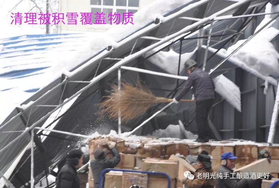 新年元旦剛過(guò),十年未遇的特大雪災(zāi)降臨皖東,明光酒業(yè)各部門迅速反應(yīng),公司總經(jīng)理鞏建召開部門負(fù)責(zé)人緊急會(huì)議。針對(duì)災(zāi)情做出部署。提出:先社會(huì)、后企業(yè),先大家,后小家。突出重點(diǎn):一是104國(guó)道積雪清理,保暢通;二是倉(cāng)庫(kù)物質(zhì)轉(zhuǎn)運(yùn);三是車棚內(nèi)車輛移位;四是公司內(nèi)外樹木減負(fù)保護(hù);五是公司內(nèi)部道路清理。災(zāi)情就是命令,連日來(lái),明光酒業(yè)數(shù)百人的抗災(zāi)救援隊(duì)伍,演繹了明酒雪中情。