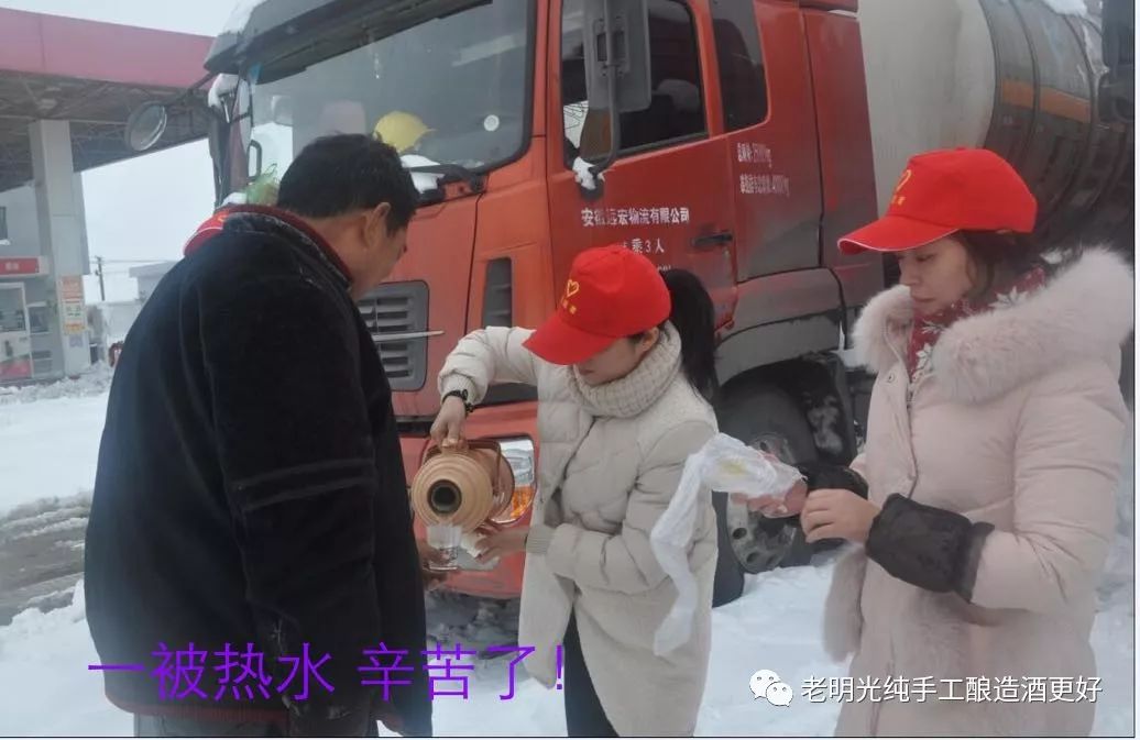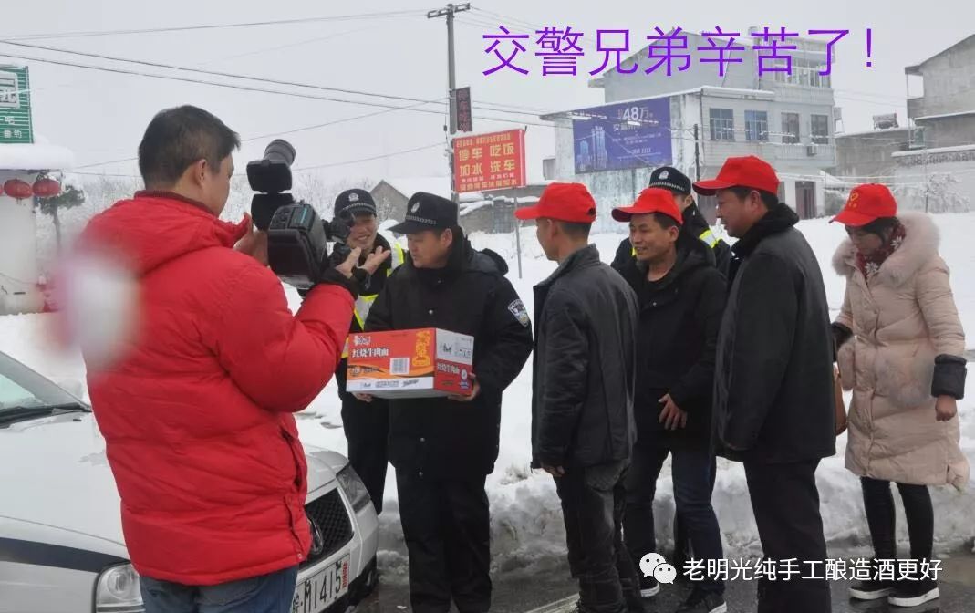 鏡頭五:志愿者慰問(wèn)交警保暢通。明光酒業(yè)志愿者服務(wù)隊(duì),帶著快餐面、開水、熱雞蛋沿路尋找保暢通的交警勇士們和滯留在路途中的駕駛員,送上暖暖熱水和明酒的一片真情。
