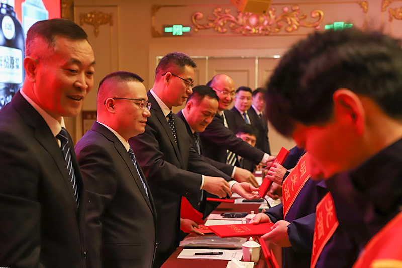 優秀集體代表人力資源部余正根、優秀個人代表采購部賀恒磊、技術標兵代表灌裝車間音邦雨、銷售標兵代表銷售公司滁州分公司明光辦事處羅德成、新銳之星代表財務部王闌作表態發言,紛紛表示將珍惜公司平臺,提升自我,勇擔責任,開拓進取,用更加優異的成績回報公司,為明酒的高質量發展做出新的更大貢獻。