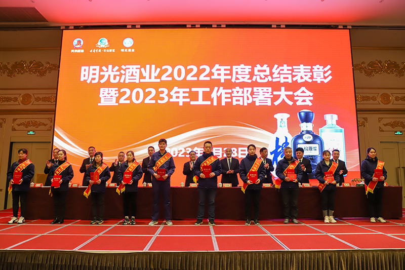3月28日上午,明光酒業2022年度總結表彰暨2023年工作部署大會在明光市南崇開元大酒店隆重舉行。明光酒業董事長華興安,總會計師李成彬,總經理助理丁峰,黨委副書記龐宗生等總辦會成員和黨委委員出席會議。