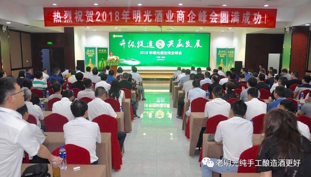 峰會緊緊圍繞“升級提速?共贏發展”這一主題,共話發展。明酒銷售公司總經理助理劉礎致歡迎詞,銷售公司總經理劉邦全面回顧了2107年明光酒業銷售工作及2018年銷售戰略規劃的宣講,經銷商代表眾聯商貿總經理魯玲玲發言,卓鵬戰略咨詢機構創始人田卓鵬,作題為“高線光瓶酒風口下大包干—超級品牌與超級模式戰略” 的專題報告。明光酒業總經理鞏建發表題為“攜手并肩 精誠合作 共贏發展”的總結講話。