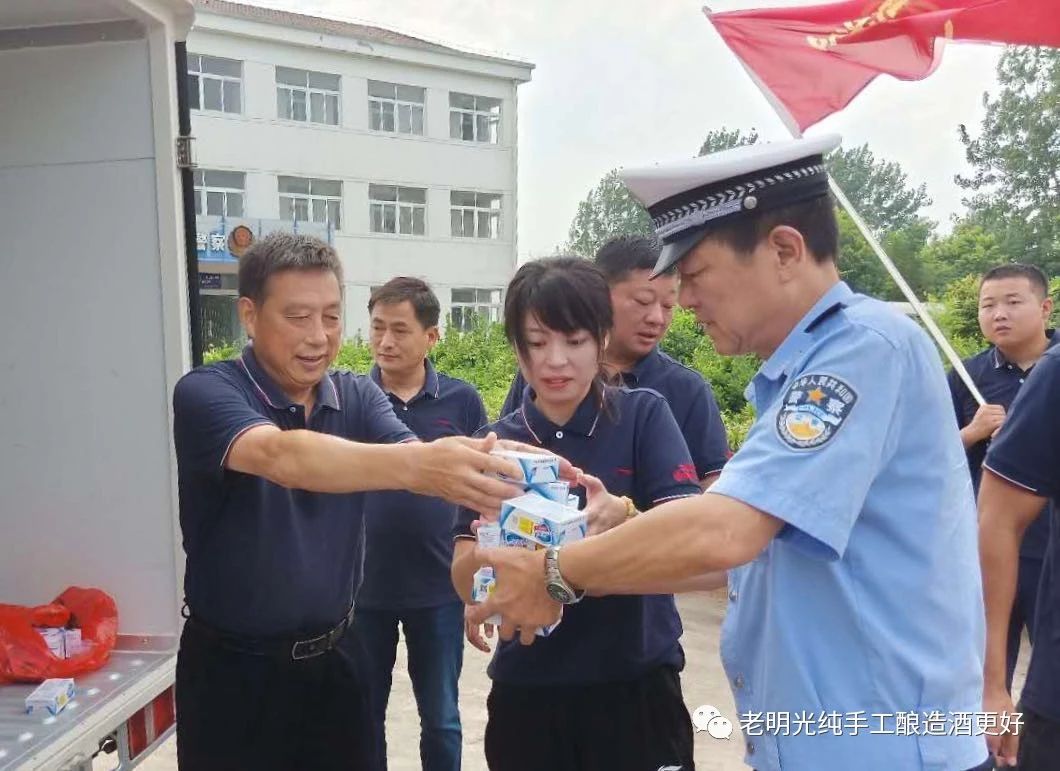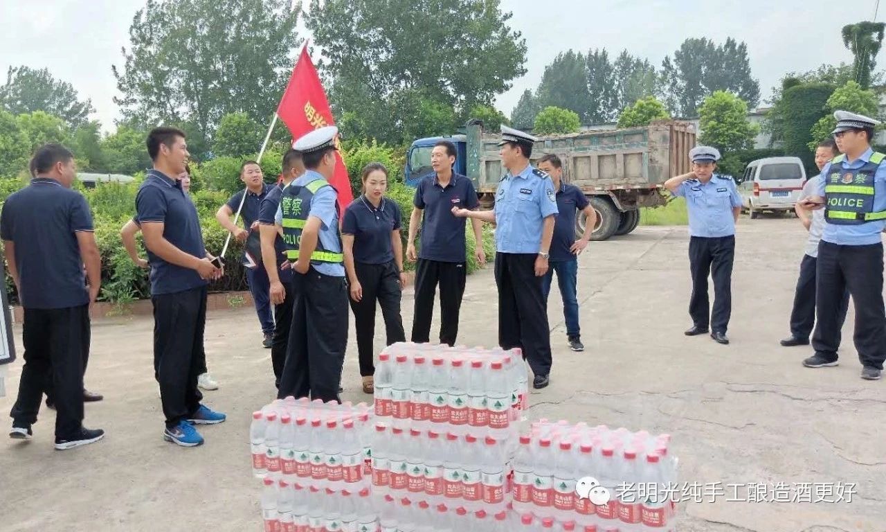 交談中,明酒趙玉龍主席說:連日來,高溫酷暑,大家堅守崗位,非常辛苦。我們代表明光酒業,希望能為炎炎夏日下,辛苦執勤的交警送去一陣清風;希望一線的交警同志在辛苦執勤的同時,愛惜自己的身體,避免在炎熱的夏季出現中暑情況。