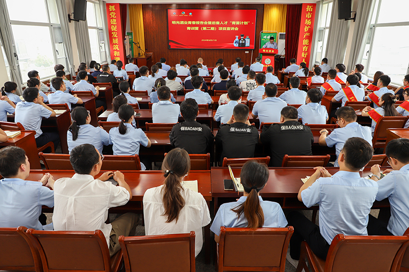 公司各部門負責人、團員青年代表、受表彰人員及符合明酒“青苗計劃”青訓營(第二期)初篩條件的全體青年員工參加會議。