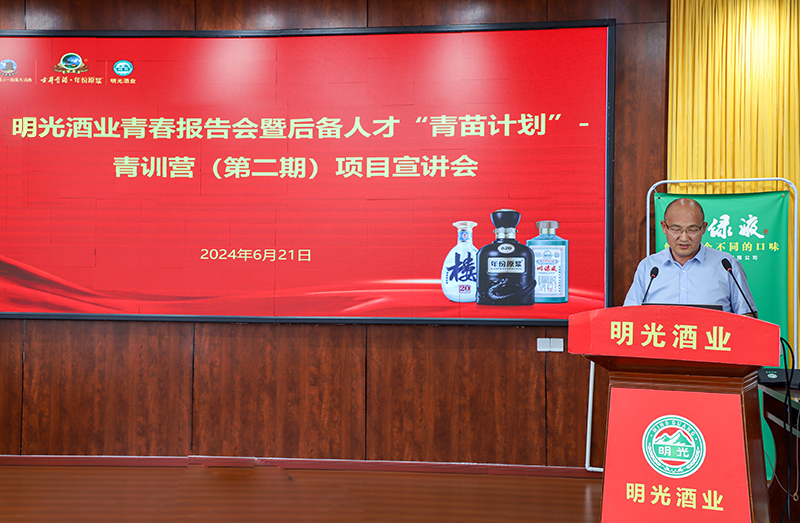 6月21日上午,明光酒業(yè)在五樓會議室開展青春報告會暨后備人才“青苗計劃”青訓營(第二期)項目宣講會。明光酒業(yè)總會計師李成彬、副總經理劉杰、總經理助理丁峰、原黨委副書記龐宗生等參加會議。