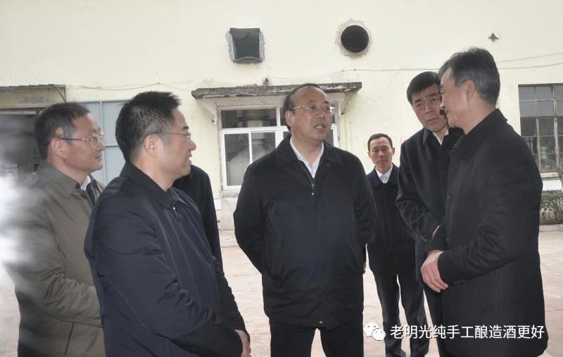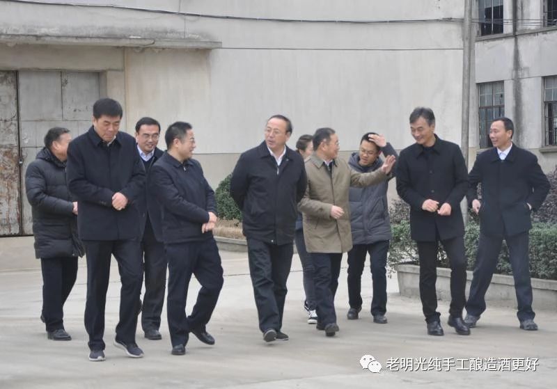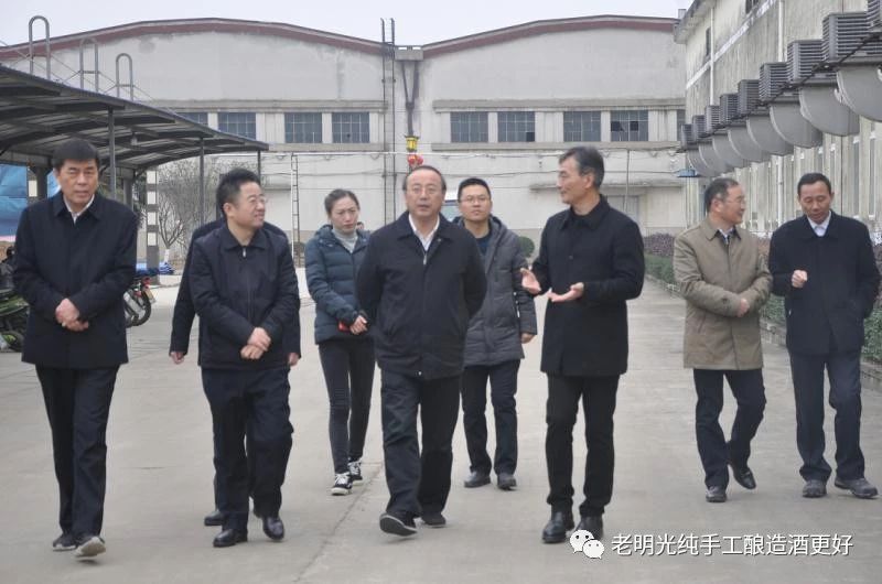 元月29日,滁州市委書記張祥安、政協主席汪建忠、滁州市副市長許光友在明光市委書記王玨等領導陪同下蒞臨明光酒業考察指導工作。明光酒業總經理鞏建向張書記等領導一行匯報了近年來明酒整體工作;詳細匯報了聚焦品牌塑造形象、保證質量提升服務、加強技改保障市場的具體做法;介紹了建設明酒文化公園、明酒酒文化博物館及明酒未來發展目標。